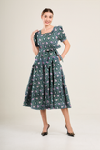Versa Cotton Dress with Nursing Zippers in Green Floral Trellis